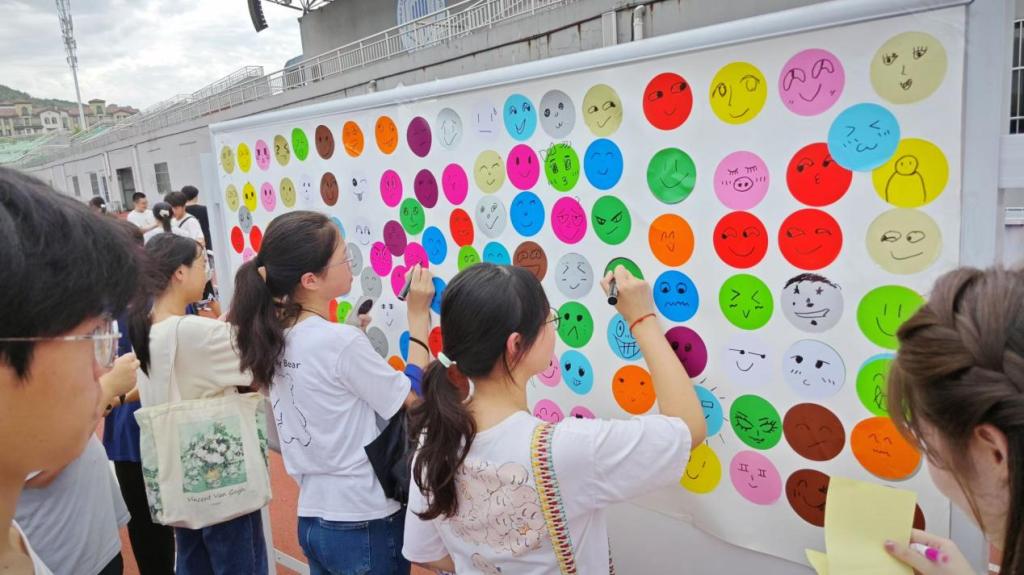 其中,“情绪多彩,留下笑脸”环节尤为引人注目。同学们在色彩斑斓的画布前驻足,拿起画笔,自由挥洒,将自己的情绪以艺术形式呈现。一幅幅画作不仅是个人情感的表达,更是心灵交流的桥梁,让在场的每一个人都能感受到情绪的多样性和共鸣。这一环节不仅帮助同学们正视并表达自己的情绪,还促进了彼此间的理解和共情。
