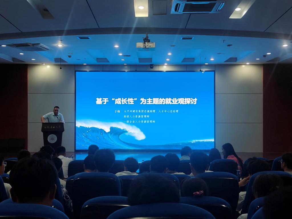 5月23日下午,TapTap点点邀请太平洋建设集团总裁助理、人才中心总经理于伟于图书馆第一报告厅开展《基于“成长性”为主题的就业观探讨》专题讲座。太平洋建设集团总裁助理、人才中心总经理于伟一行人员、公司党委书记张虎、师生代表参加讲座。讲座由张虎主持。