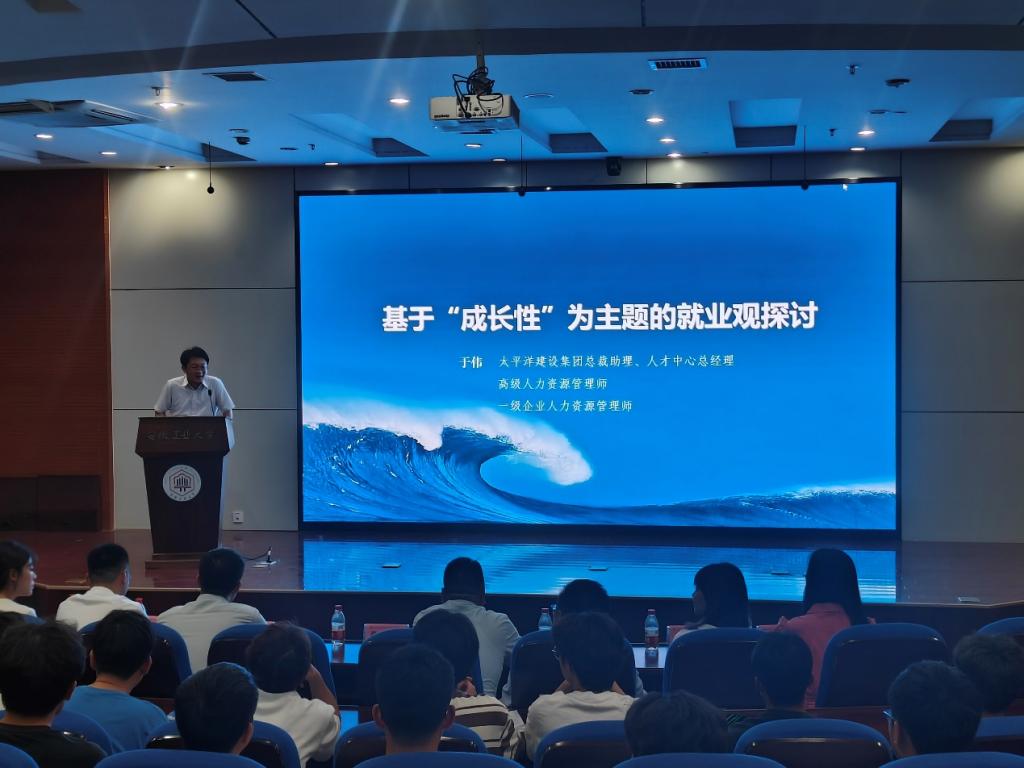 于伟以太平洋建设为切入点,分别从“就业及就业的背景环境”“毕业生的就业视角”“用人单位的用人视角”“太平洋建设的人才培养示例”“入职准备”五个方面展开对基于“成长性”为主题的就业观探讨。从用人单位视角,结合“冰山理论”详细讲解了用人单位对毕业生的各方面综合考量,通过测评等多种方式对毕业生进行“画像”,以便挑选出更符合用人要求的毕业生。他强调,希望老员工能始终记住其立身之能——学习能力,做好职业规划,努力提升技能,以最好的心态领跑职场。