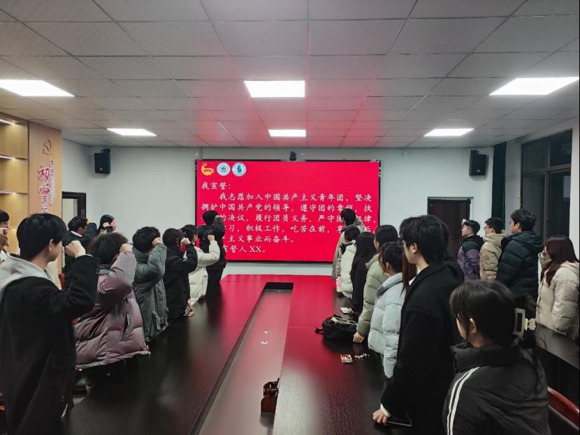 随着雄壮的国歌声响起,入团仪式正式拉开帷幕。首先,陈奎宣读本批次新团员名单。随后,崔余龙向新团员们致以热烈的祝贺,并提出三点期望:一是要坚定信念,做思想上的先锋;二是要勤奋学习,勇于实践,实现知识与行动的统一;三是要乐于奉献,树立榜样,引领风尚。紧接着,崔余龙带领新团员们深入学习了《习近平总书记考察安徽重要讲话精神》及《树立总体国家安全观筑牢国家安全人民防线》两个专题,现场学习氛围热烈,青年团员们深受启发,收获颇丰。仪式最后,团员们紧握右拳,面向团旗庄严宣誓,誓言铿锵有力,彰显了他们为共产主义事业不懈奋斗的坚定决心和青春誓言。