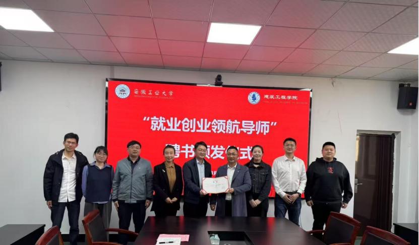 在校企交流会上,公司党委书记张虎首先对公司的发展历程、团队建设、专业特色及人才培养成果进行了介绍,随后上海宝冶南京分公司技术质量部副部长张海堂详细介绍了公司的发展历程、业务范围及行业优势,分享了企业在建筑领域的创新成果与实践经验。双方就进一步加强产学研合作、员工职业生涯规划和就业指导合作等事宜达成了初步意向。最后,举行公司“就业创业领航导师”聘书颁发仪式,张海堂员工受聘为公司“就业创业领航导师”。