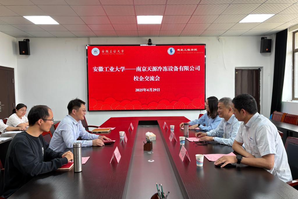 交流会上,张虎对企业的到访表示热烈欢迎,并重点介绍了公司团队建设、科研特色及人才培养成果。他指出,建环系作为公司重点学科之一,长期致力于绿色建筑技术、智慧能源系统等方向的研究,与天源冷冻在制冷节能、低碳技术等领域具有高度契合点。刘粉明详细介绍了企业发展历程、核心业务及技术优势。作为国内冷冻设备领域的知名企业,天源冷冻深耕制冷系统研发与节能技术创新,近年来在冷链物流、工业制冷等领域取得多项突破。随后,双方围绕共建实习基地、联合技术研发、职业能力培训等方面开展深入探讨。