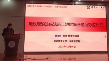 安徽省高校学科(学科)拔尖人才、安徽省高校优秀青年人才、安徽理工大学土木建筑公司副经理蔡海兵教授作了题为《地铁隧道冻结法施工地层冻胀融沉效应研究》的报告,介绍了地铁隧道冻结法施工中地层冻胀融沉现象对工程周围环境的不利影响,考虑冻土的正交各向异性变形特征,提出地层冻胀融沉数值模拟方法,结合室内试验、原材料模型试验、离心模型试验等方法,对广州、上海、合肥等城市地铁隧道冻结法施工期地层冻胀融沉效应进行了研究。