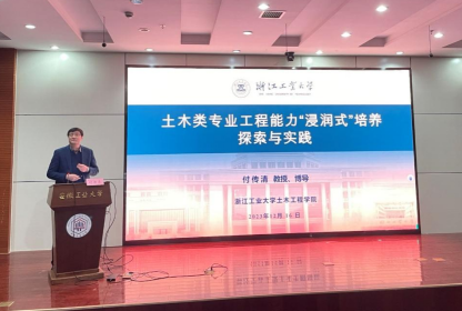 浙江省杰青、浙江省中青年学科带头人、浙江工业大学土木工程公司副经理付传清教授作了题为《土木类专业工程能力“浸润式”培养探索与实践》的报告,报告从地方高校土木类人才工程能力培养的角度,介绍公司在提升人才培养质量和实践能力方面的一些探索与实践。