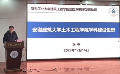 国家高层次青年人才、安徽建筑大学土木工程公司执行经理张宁教授作了题为《安徽建筑大学土木工程公司团队建设设想》的报告,主要介绍了安徽建筑大学土木工程公司发展历程、学科发展现状以及从专业建设转向团队建设的未来发展思路与设想。