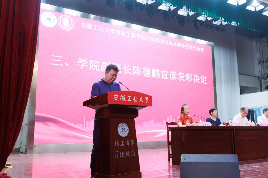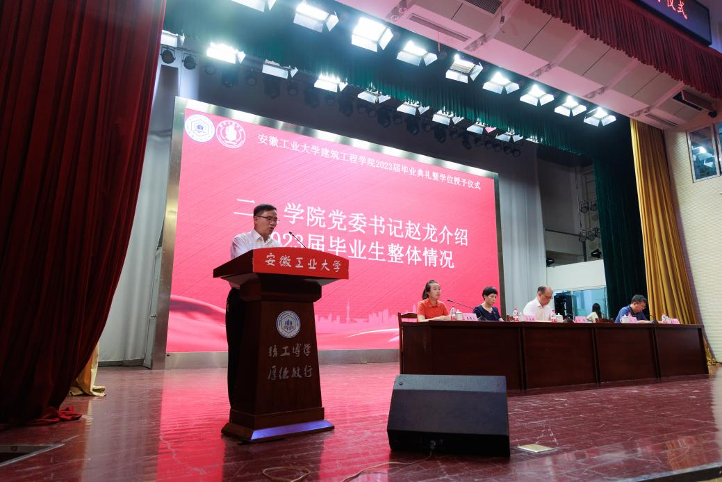 伴随着雄壮的国歌声,2023届员工毕业典礼暨学位授予仪式正式拉开帷幕。公司党委书记赵龙介绍了公司2023届毕业生整体情,副经理陈德鹏宣读了2023年安徽省普通高等公司优秀毕业生、校优秀毕业生、毕业生考取研究生录取率优秀班级、员工联络员名单。