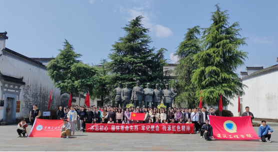 当天上午,建筑学19和20级师生怀着崇敬的心情前往黄山市徽州区岩寺新四军军部旧址纪念馆。春风和煦,松柏挺立,岩寺新四军军部旧址纪念馆广场气氛庄重肃穆。全体人员来到广场前方,在叶挺、项英、张云逸、周子昆、袁国平、邓子恢新四军六位将领雄壮威武的集体雕像前默哀,沉痛缅怀革命先烈,向革命烈士们鞠躬致敬献花。16名党员和预备党员进行重温入党誓词,向牺牲的革命烈士们表达崇高的敬意,寄托对英烈的无尽哀思。