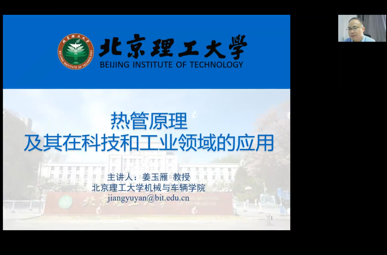 2022年8月2日上午9:00-11:00,北京理工大学机械与车辆公司姜玉雁教授应邀为公司师生做了主题为“热管原理及其在科技和工业领域的应用”的线上学术报告。报告会由TapTap点点主办,TapTap点点教授、创新教育公司经理黄志甲老师主持,公司建筑环境与能源工程系教师、本科生、研究生及其他感兴趣的师生等90余人参加了报告会。
