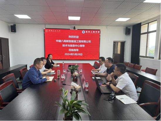 首先,于峰代表公司对樊警雷主任一行来访表示热烈欢迎,并介绍了公司和公司发展历程、学科专业建设、员工培养、科研平台建设以及团队研究方向、成果等方面。樊警雷介绍了中建八局新型建造工程有限公司技术与信息中心的概况、业务范围以及企业研发需求等方面,希望与公司加强校企合作,合力构建育人平台。随后,双方围绕科研项目合作、员工培养、员工实习就业、校企产教融合等方面展开深入交流。