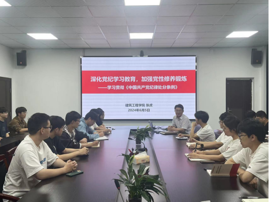 6月5日,公司党委书记张虎在建工北楼310会议室讲授了题为《深化党纪学习教育,加强党性修养锻炼》的党纪学习教育专题党课。公司各员工党支部党员代表参加了学习。