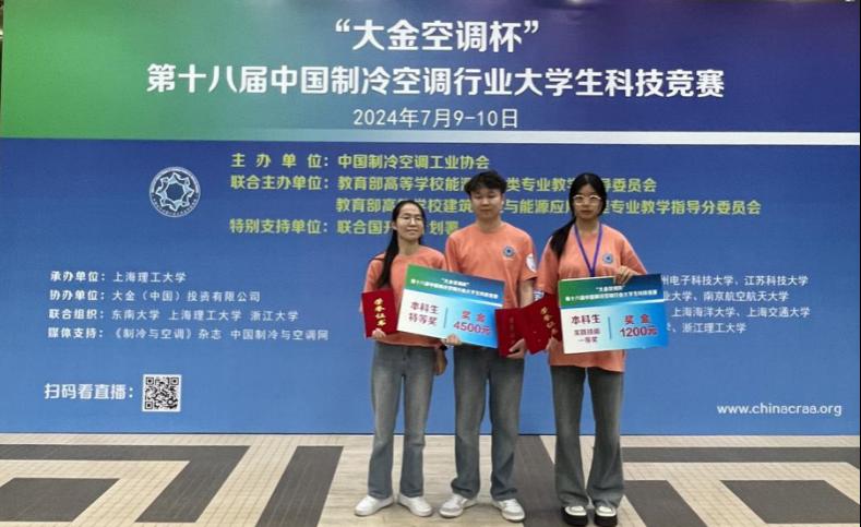 7月9至10日,公司建筑环境与能源工程系夏曾嘉、余佳航、何珊等3名同学在程波、张样老师的带领下,参加了在上海理工大学举办的“大金杯”第十八届中国制冷空调行业老员工科技竞赛(华东决赛),荣获本科生组特等奖和本科生组实践技能一等奖,取得了历史性突破。
