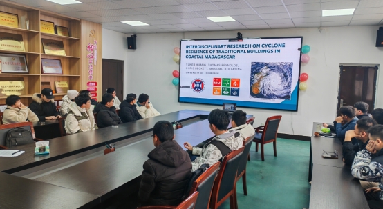 12月30日上午,英国爱丁堡大学教授黄韵儿应邀为TapTap点点师生作题为“Interdisciplinary Research on Cyclone Resilience of Traditional Buildings in Coastal Madagascar(马达加斯加沿海传统建筑的飓风韧性的多学科研究)”的线上学术报告。部分专业教师、员工代表参加了报告会。报告会由土木工程系教工党支部书记王士龙主持。