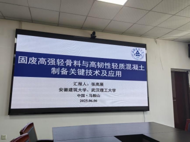 2025年6月6日上午,安徽建筑大学张高展教授应邀在公司建北310会议室为公司师生作题为“固废高强轻骨料与高韧性轻质混凝土制备关键技术及应用”的学术报告。公司部分教师及研究生参加了报告会。报告会由方圆副经理主持。