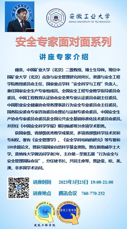 报告对象:安全科学与工程系教师、研究生、本科生及其他感兴趣的师生