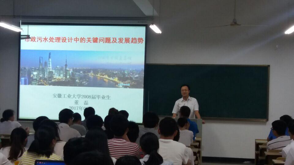 2017年6月11日晚7时,公司2008届优秀毕业生、上海市政设计研究总院员工董磊在建工南楼511为给排水科学与工程专业的师生做了题为“市政污水处理设计中的关键问题及发展趋势”的学术报告。市政工程系部分老师、硕士研究生及13、14级本科生参加了报告会。